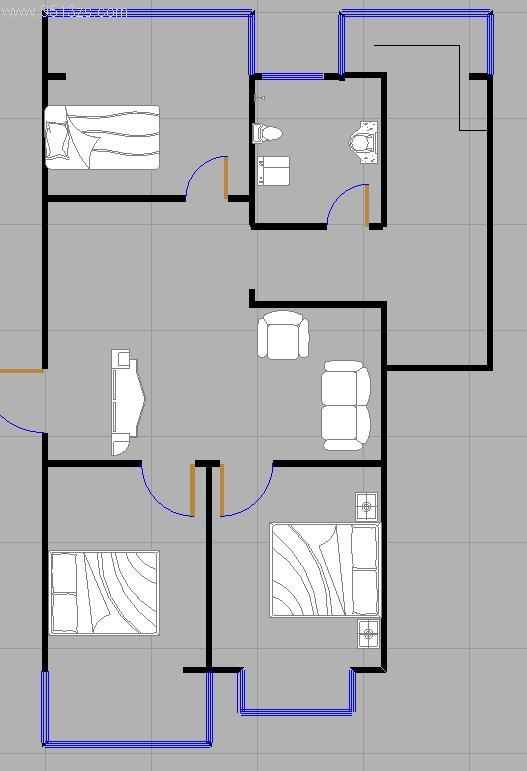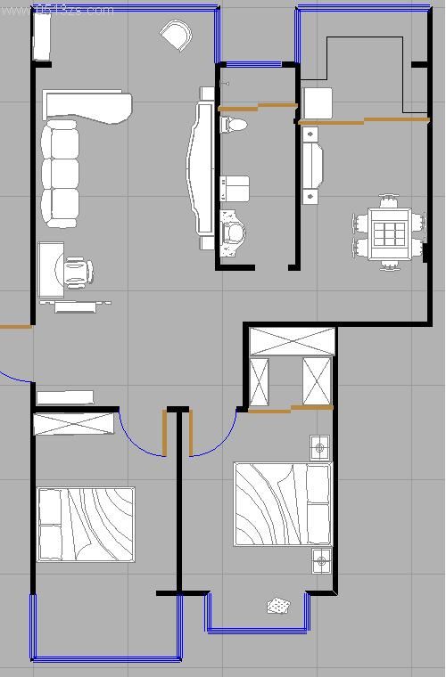 这几天一直再考虑房屋的布局。也看了楼上几家已经开工的。呵呵。小小的房子,用心想,设计还挺多的。 一户人家,能把我这样113平方的房子改为三室两厅,不简单。布局如下:  想法挺特别的。客厅的墙几乎能敲的都敲了。 不过,一个卧室朝北,可能冷。客厅变小了,一点自然光没有。不喜欢。不适合我们年轻人。 暂时不考虑。 我仔细想了想,实地仔细琢磨了一下,也收了我一个英国留洋回来的同学的启发,终于找到了放电脑的地方。只稍微改了一点结构。主要针对主卧室的衣帽间和门。如下图: