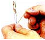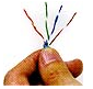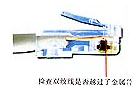 步骤7:确定双绞线的每根线已经正确放置之后,就可以用RJ-45压线钳压接RJ-45接头,如右图 市面上还有一种RJ-45接头的保护套,可以防止接头在拉扯时造成接触不良。使用这种保护套时,需要在压接RJ-45接头之前就将这种胶套插在双绞线电缆上,如图。