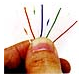 步骤8:重复步骤2到步骤7,再制作另一端的RJ-45接头。因为工作站与集线器之间是直接对接,所以另一端RJ-45接头的引脚接法完全一样。完成后的连接线两端的RJ-45接头无论引脚和颜色都完全~样,这种连接方法适用于ADSL MODEM和计算机网卡之间的连接,计算机与集线器(交换机)之间的连接。完成的RJ45接头应该如下图所示。  交叉网线用于ADSL MODEM和集线器HUB的连接(与MODEM设计有关系,并非全部如此),HUB与HUB之间不通过级连口的连接,以及两台计算机直接通过网卡相互连接。制作方法和上面基本相同,只是在线序上不像568B,采用了1-3,2-6交换的方式,也就是一头使用568B制作,另外一头使用568A制作