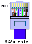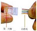需要特别注意的是,绿色条线应该跨越蓝色对线。这里最容易犯错的地方就是将白绿线与绿线相邻放在一起,这样 会造成串扰,使传输效率降低。 左起:白橙/橙/白绿/蓝/白蓝/绿/白棕/棕 常见的错误接法是将绿色线放到第4只脚的位置(如图所示)。