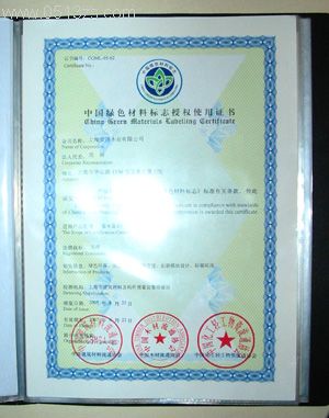 5 A- Z3 `* T" v. w: ~关于环保方面,沈老板给我看了他们的“中国绿色材料标志授权使用证书”,发证机关是中国建材流通协会和中国木材流通协会,据他说这个标志比十环标志还硬,对他这个说法我保留意见。 ( C+ y, c. g* z1 e6 V( \