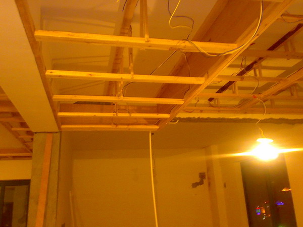 ijcDrrZP.jpg (69.55 KB, 下载次数: 1955) 下载附件 保存到相册 边记边学,边学边装(又上新图了!) 2008-9-2 20:39 上传 先在天花板(混凝土)上钻孔,然后把1.2*1.2*5cm大小的木针塞进去,然后把木梁用地板钉钉在天花板上,正好钉在刚才塞进去的木针里,然后在木梁下面做框结构,竖着的叫吊筋,在一块平顶的周围用木工板包好,有的还做灯槽。