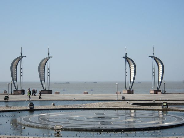 这有点像海天相接的画面了,不过这应该叫做江天相接了。