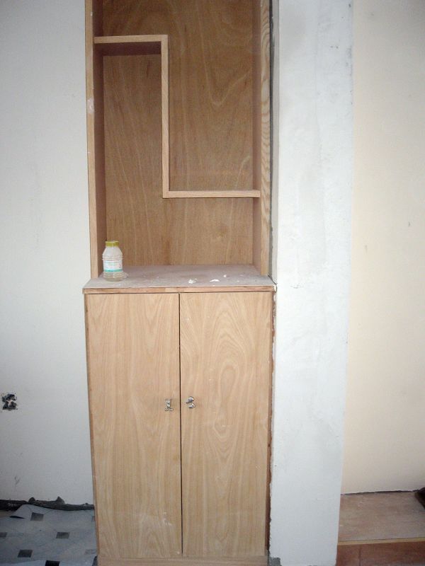 还有就是那个硕大难看无比的防盗门,由于颜色极丑,我都不打算做进户门套的。网大和师傅们商量决定,给俺的防盗门喷漆,然后做个纯白色的进户套,忽略掉颜色差异。