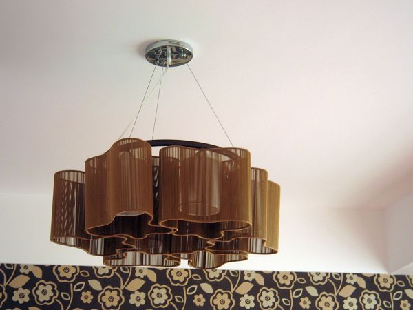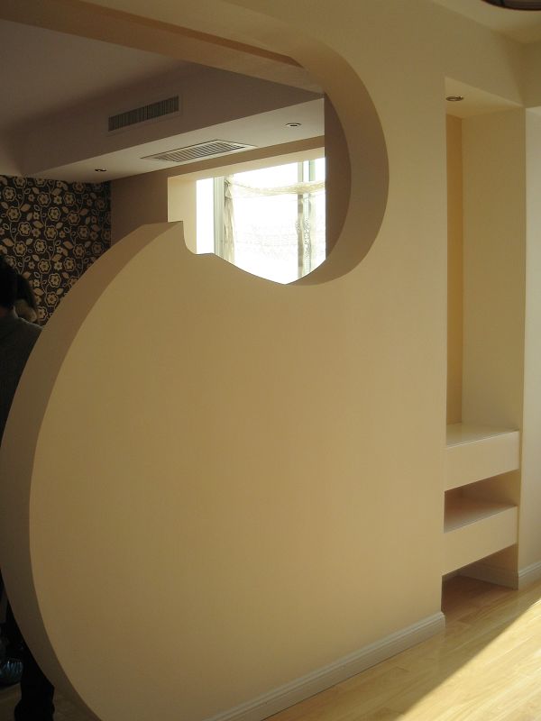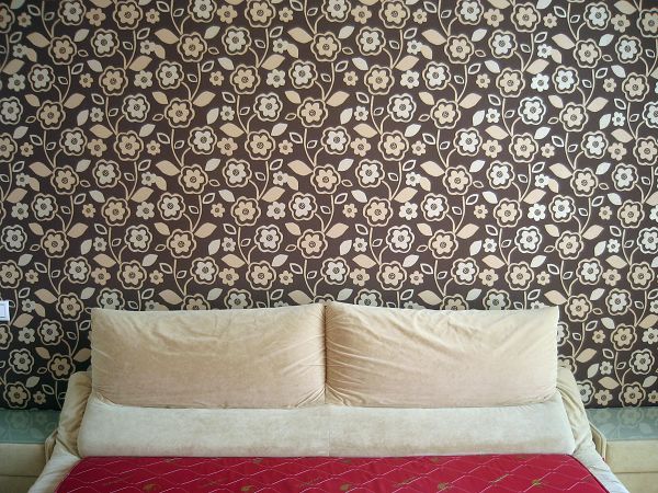 和老板说了家中需要贴墙纸的基本情况,特别说明了榻榻米地台背景是做了抽边的,所以客厅的墙纸为了便于裁减而不至于影响墙纸花色效果,于是,我们放弃了选择了有整体图案构成的墙纸,而专门挑选了无方向、随意图案纹理的墙纸,这样,即使裁减之后贴在做了抽边的那面墙上,也不会影响整体效果。然后就是颜色的考虑,由于要和地面、房门色系相配,又能和沙发茶几的颜色协调,于是选择米黄色系的。看了好几款,颜色倒是不错,很淡雅,纹理也很有凹凸感,但在白色的墙面背景下,颜色不能够十分突出。最后看重一款颜色稍深的,店员还特地用白纸垫在样品下看了效果,比较突出。