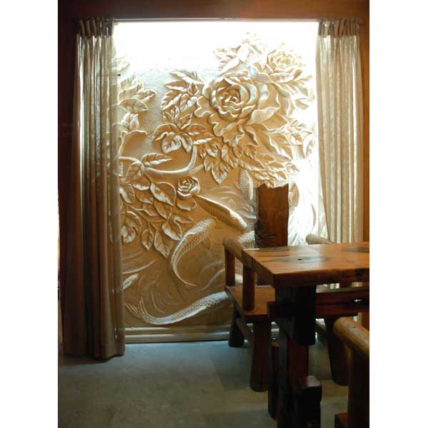 砂岩雕是在泥塑上雕,细腻而精致,巨型的深雕轻而易举,它比天然石、大理石轻,加工的高密度使它比天然石、大理石更坚韧;