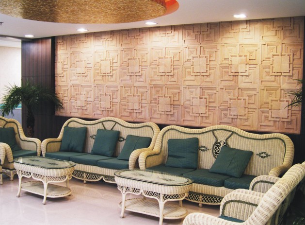 砂岩雕小版块组合而成的背景墙(隔断、玄关等),其雕花所产生的艺术造诣,确实是墙纸、花砖、木质造型都无法攀比的。